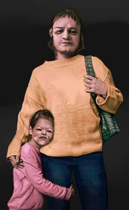人物图鉴母子本页总览母子 注意该人物为住客角色,是人类或伪人是随机的哦! 判断人伪 备注实际上均为母亲体征 双手 无红疹为人,有红疹为伪人类伪人 照片 宽波为人,窄波为伪人类伪人 个人剧情 可以得到一个电话号码